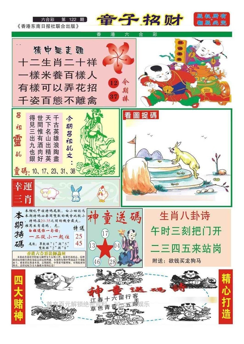 125期:铜罗湾特码爱钱料/港彩仔看码/钟离子禁肖/打油诗/门联诗