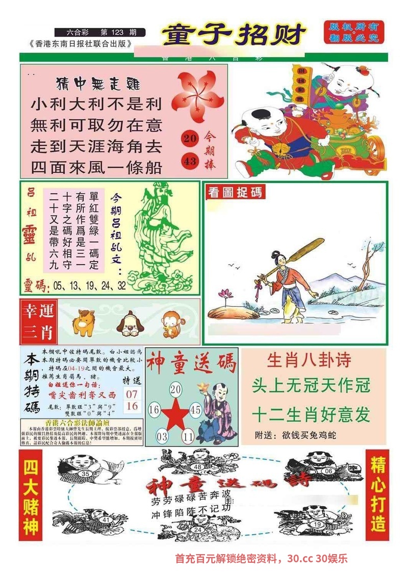 125期:助理玄机诗/简单好下注/台湾玄机诗/港台澳七肖/必中人物
